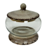 Bonbonnière en verre avec socle et couvercle en céramique craquelée