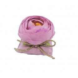 Coffret contenant 1 coussin à parfumer rose décoré d’un gracieux bouton de renoncule et d’un joli cordon doré.
